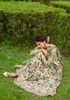 The delicate floral-inspired print and harmonious color palette create a sophisticated and refreshing look, making it ideal for casual wear, daytime outings, and seasonal gatherings.